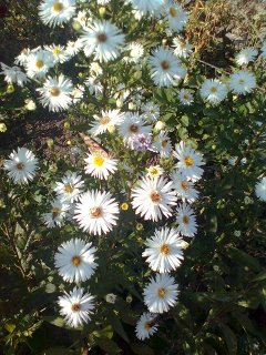 И совсем не скучно на даче. Ещё цветут ромашки, сентябринки, сухоцветы, кое-где астрочки, даже гайлярдия раскрыла один цветочек и он такой вес